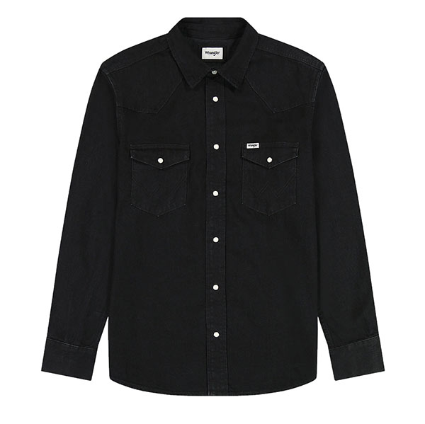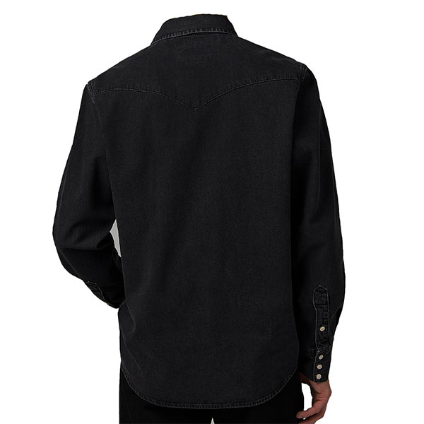 Fabriquée dans un denim non élastique, cette chemise en jean regular de couleur bleu foncé combine des finitions authentiques comme un empiècement western, un col pointu et une fermeture à bouton-pression.