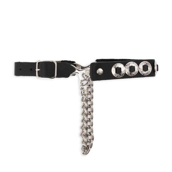 Donnez un supplément d’âme country à vos bottes avec cette sangle de cuir noir décorées de plaques rondes argent gravées d’étoiles.